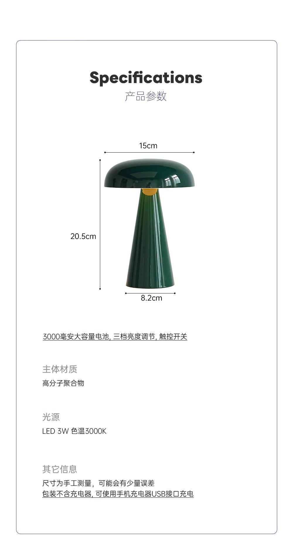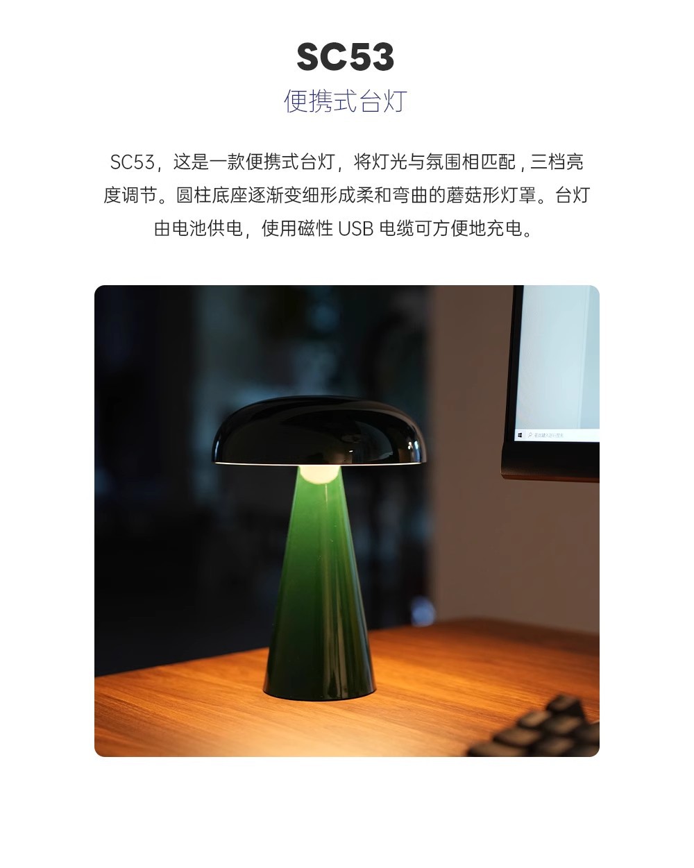 Danish Designer Como Sc53 Bar Mushroom Usb Charging Wireless Atmosphere Nightlight Bedroom Bed Lamp